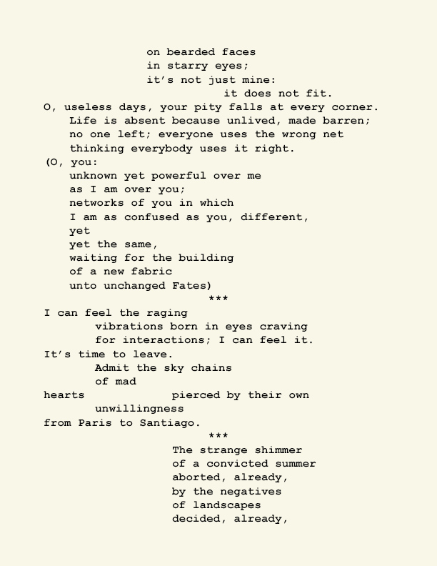 Alexandre Ferrere is a 34-year-old librarian living in Caen, France, and has a PhD on American poetry and little magazines. His poems and essays can be found both online and in print, and his latest experimental chapbook titled From Tomorrow, With Love has been published by Ethel in January 2025. Alexandre could have been a flower but cried himself to a human being.