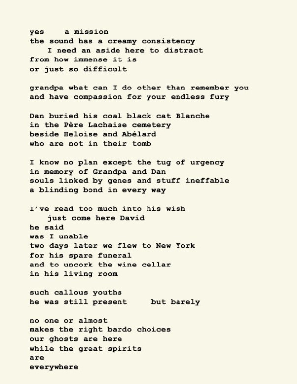 David Herz was born in Boston in 1954 and has lived in Maryland, Georgia, Chicago and New York City as well as seven years in the Brazilian cities of Belo Horizonte and Sao Paolo. For the last 46 years, he has lived in Paris, France. In Chicago he studied briefly under Del Close, at Second City, and with David Mamet. In New York City, he had Alice Notley, poetess supreme, as a teacher. He has worked at many odd jobs such as subtitling movies and Sipa Photopress Agency photographs, technical translation as well as journalism for English language newspapers. Herz practices aikido, poetry, spirituality, the love of good food, and to quote Woody Allen, the appreciation of “contours describing a set of parabolas that would cause cardiac arrest in a yak…” All done at a dignified distance.
