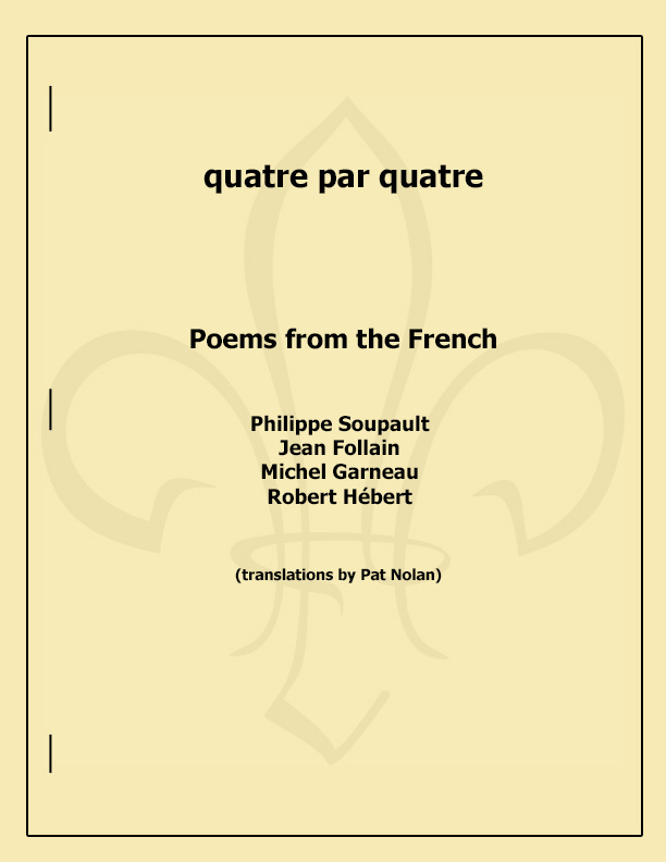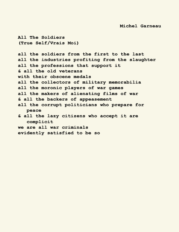 Michel Garnau (1939-2021)was a well-known Quebecois playwright and poet born in Montreal. The poems selected here are from poèmes du traducteur (poems of the translator) written while he was translating Leonard Cohen’s Book Of Longing, writing an original poem for each poem he translated. The friend who gifted me this edition called him “the Charles Bukowski of Montreal.”