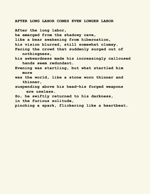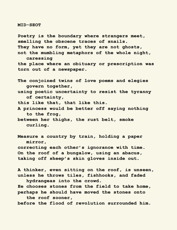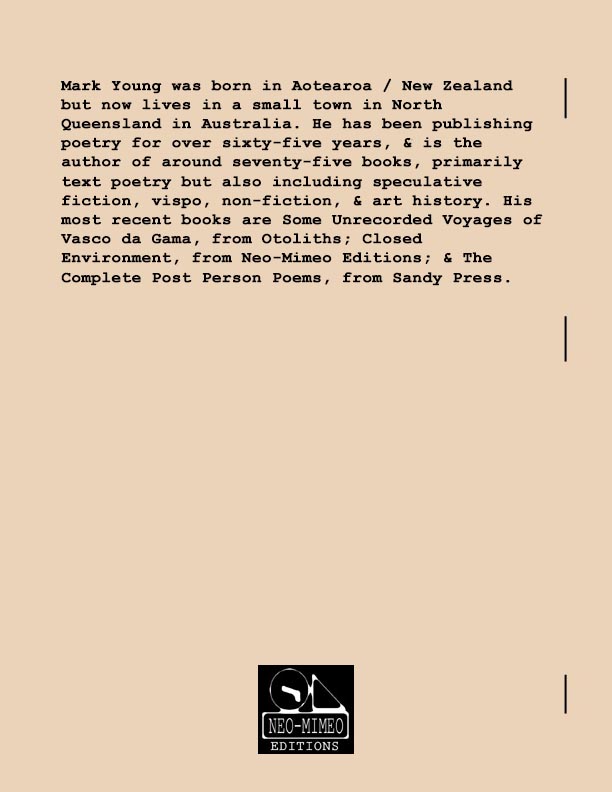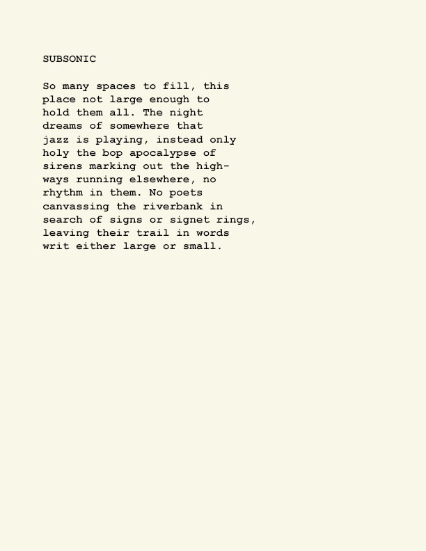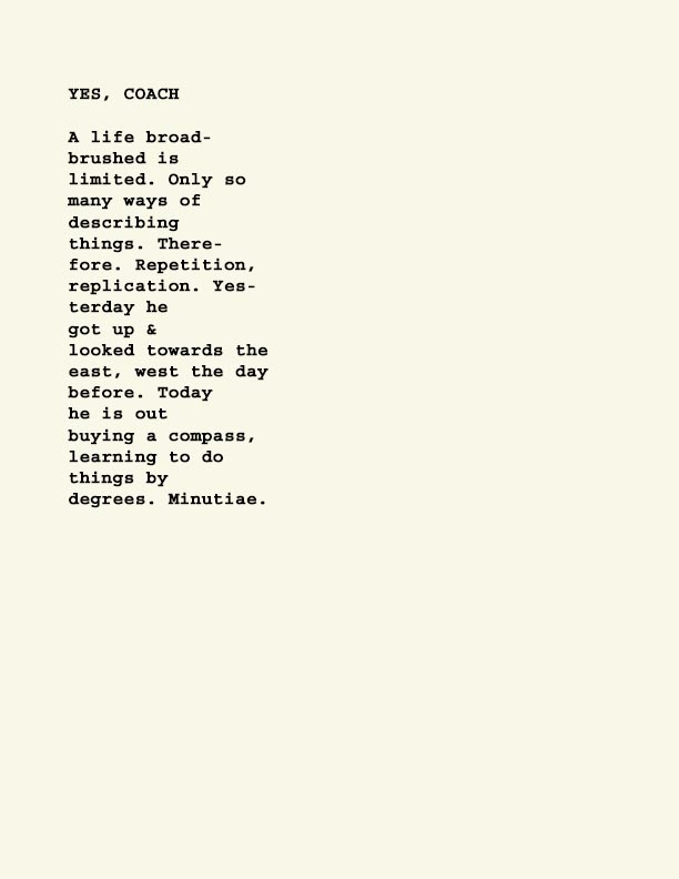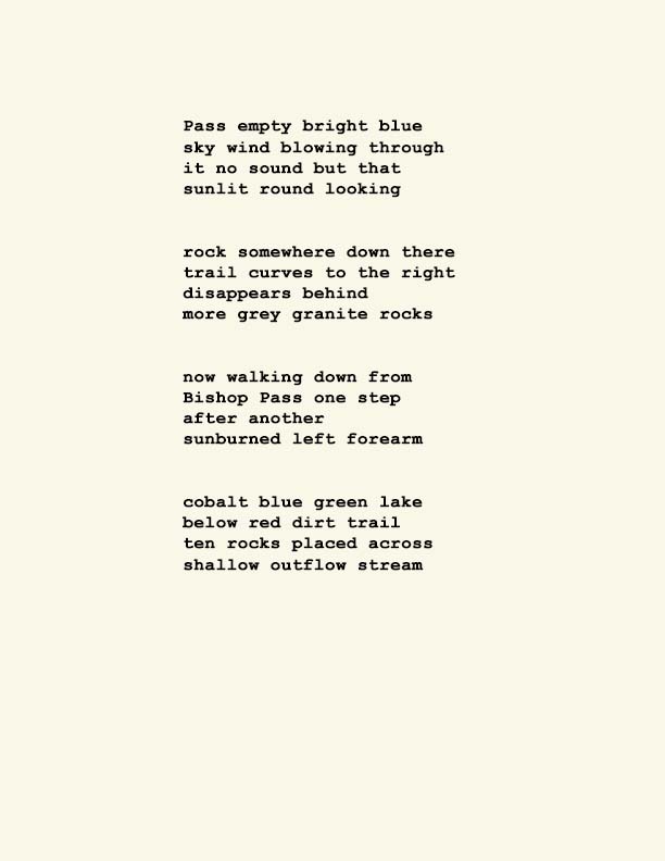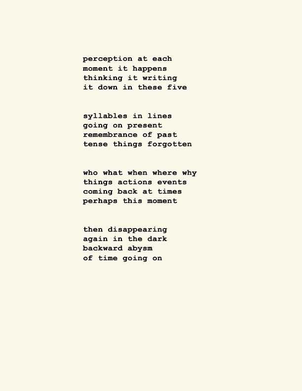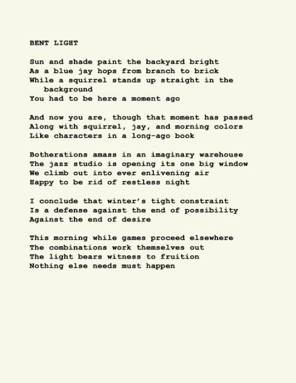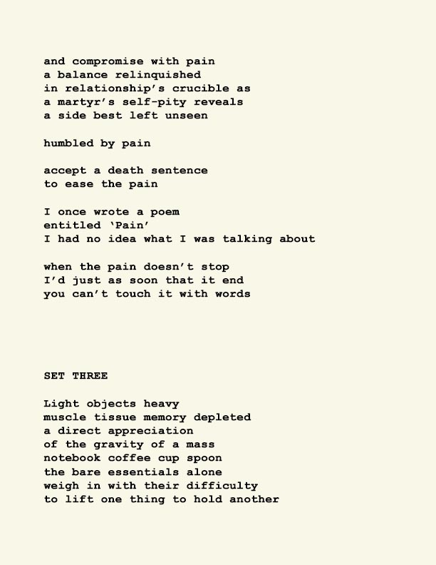 Stephen Ratcliffe is the author of more than 25 books of poetry, including m o m e n t (Spuyten Duyvil) Black and Yellow Notebooks (BlazeVox), Rocks and More Rocks (Cuneiform), Painting (Chax) and Selected Days (Counterpath) which won the SF State Poetry Center Book Award, as well as a collection of his correspondence, Barbara Guest : Stephen Ratcliffe : Letters (Chax). He has also written 3 books of literary criticism, Reading the Unseen: (Offstage) Hamlet, Listening to Reading, and Campion: On Song. His ongoing series of eight 1,000-page books written in 1,000 consecutive days are at Editions Eclipse (http://eclipsearchive.org/projects/editions.html) and his series of daily poems-plus-photographs are at Temporality (http://stephenratcliffe.blogspot.com). Publisher of Avenue B books and Emeritus Professor at Mills College, he has lived in Bolinas since 1973.