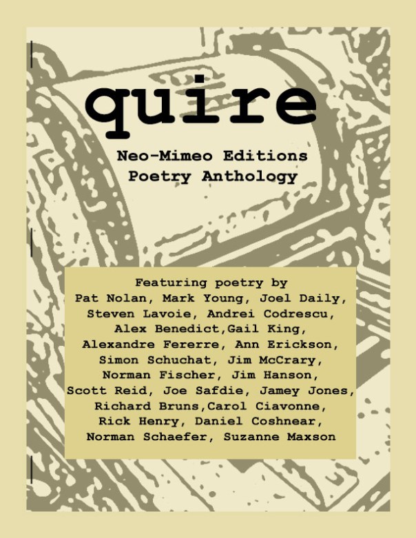 Neo-Mimeo Editions Gallery Featuring a selection of fine poetry in a retro format Click on each of the covers to access that particular Neo-Mimeo Edition N-M E VII N. 1 Mingling N-M E VII N. 2 Triple T Redux N-M E VII N.3 Late Night AT The Hamburg Inn N-M E VII N.4 Poems That Are More Recent N-M E VII N.5 How To Be A Poet In China, Part I N-M E VII N.6 How To Be A Poet In China, Part II N-M E VII N. 7 B A L A N C E N-M E VII N.8 SUDDEN ONSET N-M ED VII N.9 QUAKING ASPENS N-M E VII N.10 CIVIL SERVICE N-M E VII N.11 CHANCE DEMOGRAPHIC N-M E VII N. 12 [Insert Title] NM-E VII N. 13 onward walking (1) quire, Neo-Mimeo Editions Poetry Anthology Vol. I N-M E 1 The Secret Of Poetry N-M E 2 Closed Environment N-M E 3 Must Fill Horse N-M E 4 Salvage N-M E 5 How To Live Under Fascism N-M E 6 What Is Your Dangerous Career? N-M E 7 Take Your War And Go To Hell N-M E 8 Damnatio Memoriae N-M E 9 2 Geese In High Wind N-M E 10 Baltimore Sun N-M E 11 Seasonal N-M E 12 Shuffy’s Poem N-M E 13 Interrogations N-M E 14 Where Do We Come From? N-M E 15 Haiku & Tanka N-M E 16 Organized Innocence N-M E 17 dimensions, doorstops, sidewalks N-M E 18 Slices Of A Life Unfinished N-M E 19 The Littoral and The Imaginary N-M E 20 Hesitations N-M E 21 Professional Poems N-M E 22 Way Out West N-M E 23 Kintsugi N-M E 24 As A Matter Of Thought Share this: Click to print (Opens in new window) Print More Click to share on LinkedIn (Opens in new window) LinkedIn Click to share on Facebook (Opens in new window) Facebook Click to share on X (Opens in new window) X Click to email a link to a friend (Opens in new window) Email Like Loading...