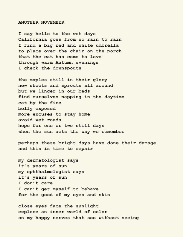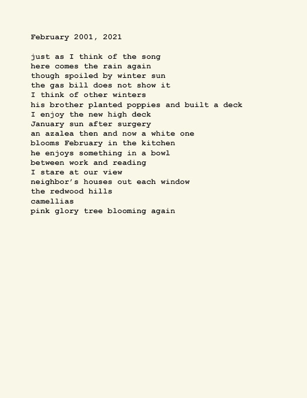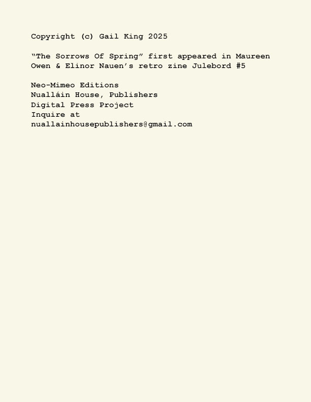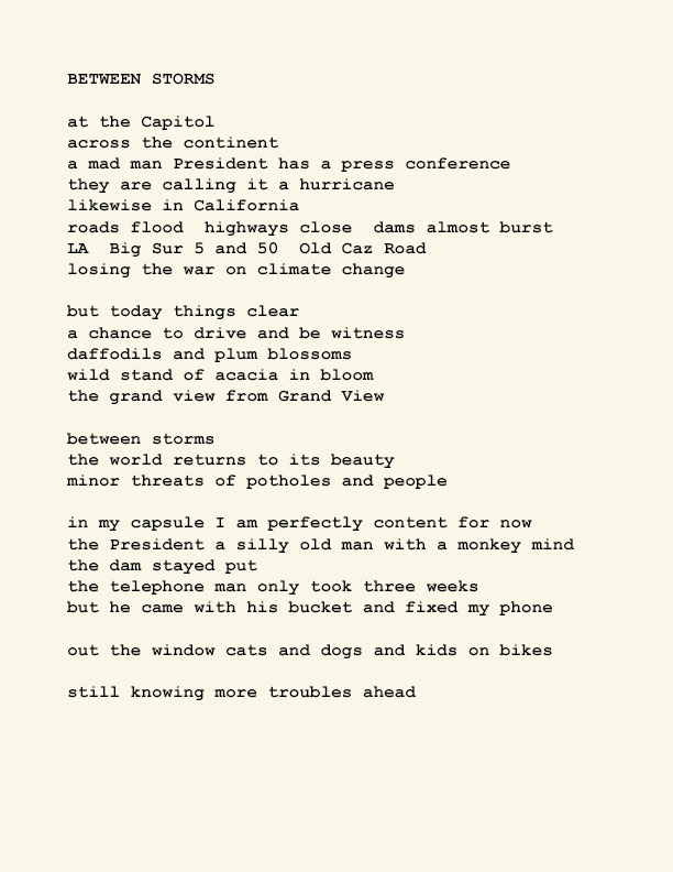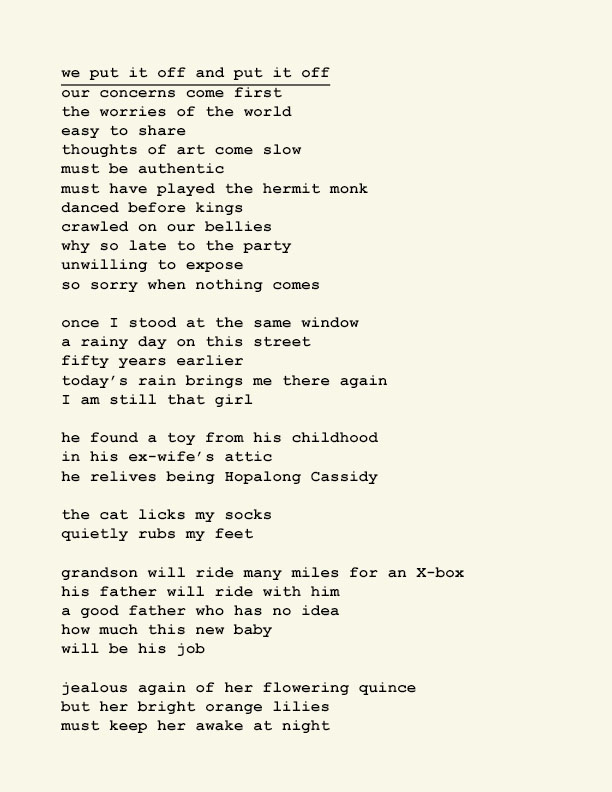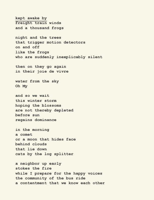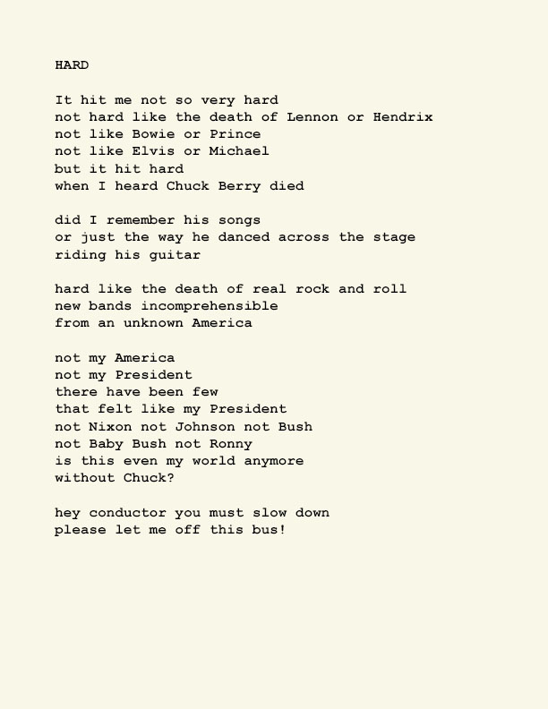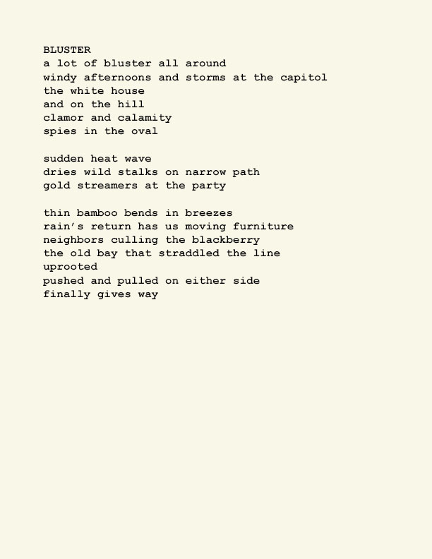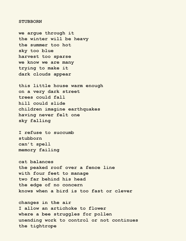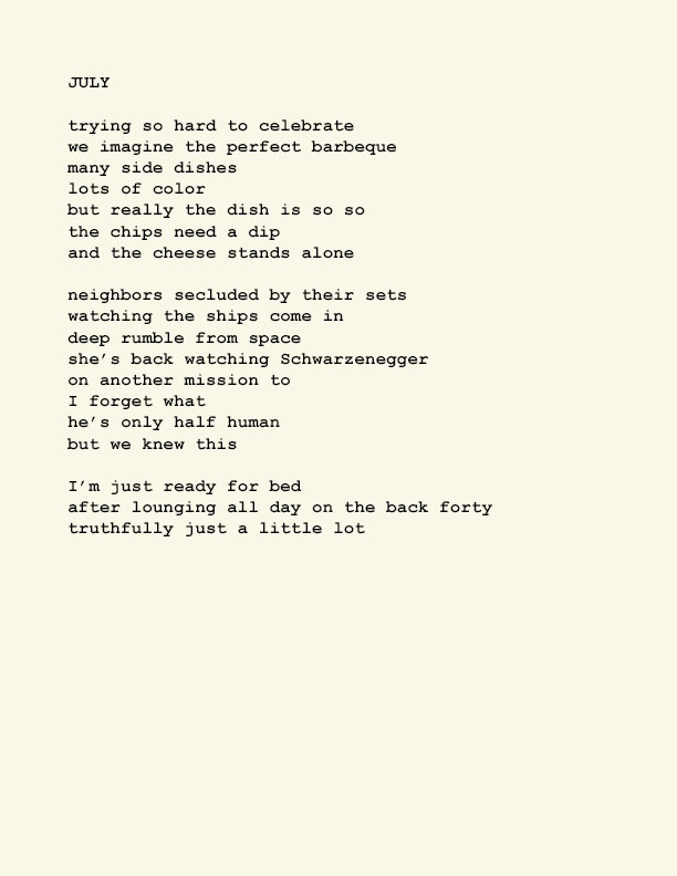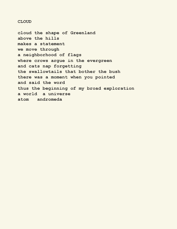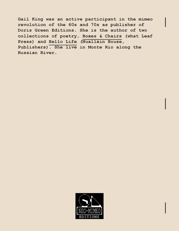 Jim McCrary’s first poems were published in the mimeo format of Grist Magazine 1966 in Lawrence Ks. Grist was edited and published by John Fowler and later went from mimeo to letterpress and finally to one of the first online mags as Grist-on-Line. Jim published 4 books, dozens of chapbooks and lots of poems in many obscure electronic and print magazines. Over the years he sat in McSorley’s with Paul Blackburn sharing bad poems with him. He sat on the roof of a hotel in Lawrence with Ed Dorn and they drank Old Style beer with John Moritz and Ken Irby. He studied with David Bromige at Sonoma State and spent time with Nolan, Mariah, Grenier, Kyger, Tills, Chadwick and others. It was the best of times. He worked most of a decade as Office Manager for William Burroughs in Lawrence, KS. McCrary is an old man and still lives in Lawrence, Ks.